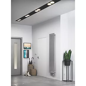 Made from one solid form with raised chamfered profile, in contrast to the individual bars of a standard flat bar radiator. Colour-matched brackets provide a floating effect. Features 50mm pipe connections which can be matched to a 50mm H-block valve for a neat finish.