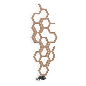 Made from hexagonal shapes across a multi-layered design, with breaks in the formation of each hex for extra distinction. Features pegs which are ideal for hanging kitchen / bathroom towels to dry. Smooth, metallic finish. Features 50mm pipe connections, which can be matched to a 50mm H-block valve tol provide a neat finish.