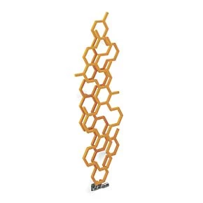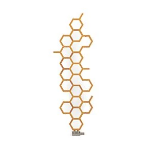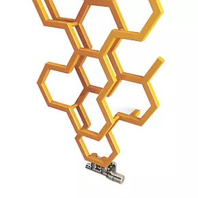 Smooth, mustard designer radiator with hexagonal shapes across a multi-layered design. Features 50mm pipe connections (suggest matching with 50mm integrated valve). Portrait (vertical) model and can not be installed horizontally.