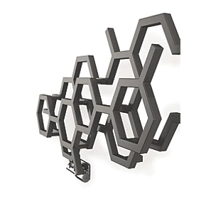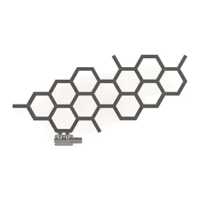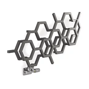 Sparkling grey designer radiator with hexagonal shapes across a multi-layered design. Features 50mm pipe connections (suggest matching with 50mm integrated valve).