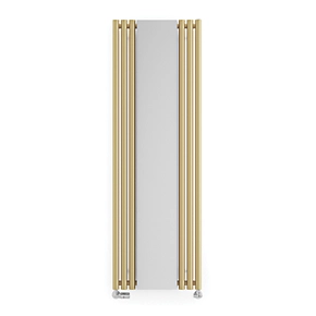 High output radiator with 270mm wide, floor length mirror. Suitable for the bedroom, bathroom, hallway or dressing room. Large internal holes, where the front bar is recessed into the rear bar, for quick water distribution. Chunky 40mm diameter bars offer a very high heat output. Either side or underside valve entry.