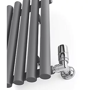 Internal diverter system for a plumber to aid the water flow as required depending on how it is installed. Features very large internal holes where the front bar is recessed into the rear bar, for quick internal distribution of the water and heat-up times. Chunky 40mm diameter bars offer a very high heat output. Side-entry only valves. Rough-textured matt finish.