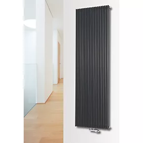 Aurora vertical radiators in striking anthracite. Contemporary tubular design fits perfectly into any modern home. Tall radiators with high quality power-coated steel construction.
