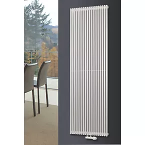 Aurora vertical radiators in white. Contemporary tubular design fits perfectly into any modern home. Tall radiators with high quality power-coated steel construction.